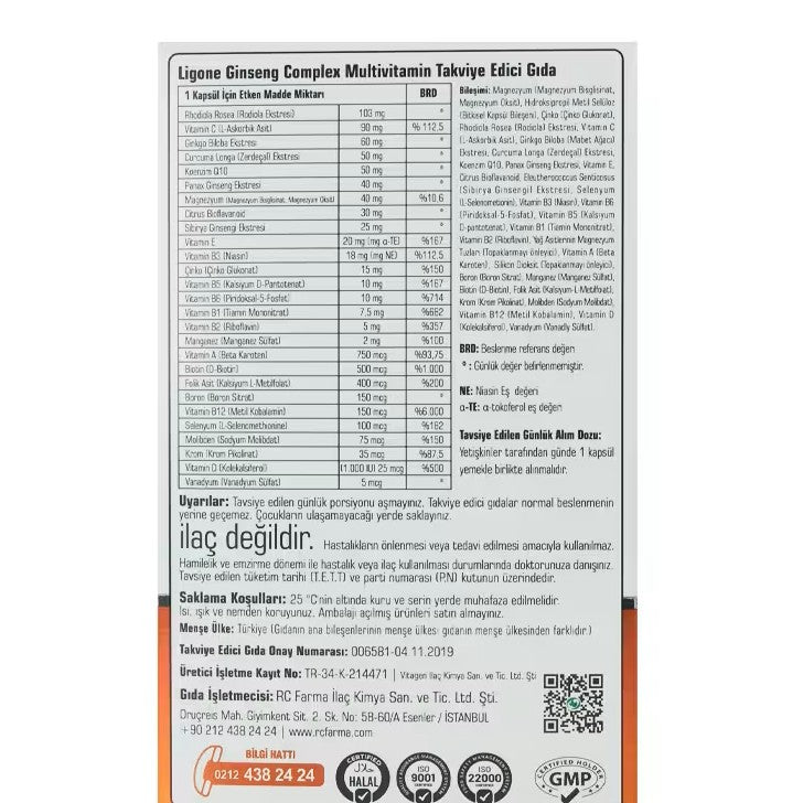 LIGONE Ginseng Complex Multivitamin & MultimineralNormal fiyat